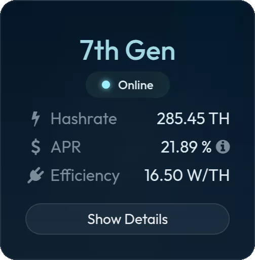 *The lifetime of mining contracts depends on their profitability. Our systems have built-in automatic loss protection and automatically disable miners to avoid costs when needed.