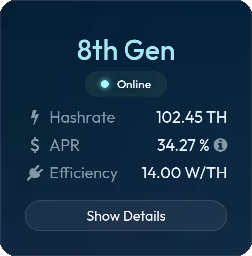 *The lifetime of mining contracts depends on their profitability. Our systems have built-in automatic loss protection and automatically disable miners to avoid costs when needed.