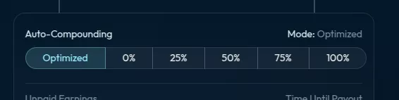 The optimized mode is based on the team’s recommendation and is intended to provide a set-and-forget option for long-term mining. If the optimized mode is selected, our system will automatically switch between 75% and 100% auto-compounding based on the average efficiency of all contracts in the account and the efficiency of the newest available contract.