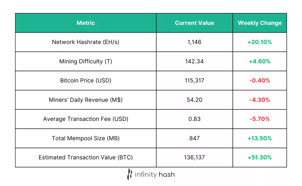 On-chain, settlement value climbed, consistent with whales and treasuries reshuffling after recent profit-taking and miner reserve sales. Policy and supply-chain headlines remain a headwind: tariff disputes and potential US security reviews for foreign rig makers raise cost and sourcing risk, while authorities continued cracking down on power theft from Brazil to Hong Kong. The arms race favors efficient fleets and cheap energy; everyone else is still in a squeeze.